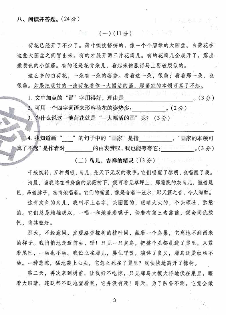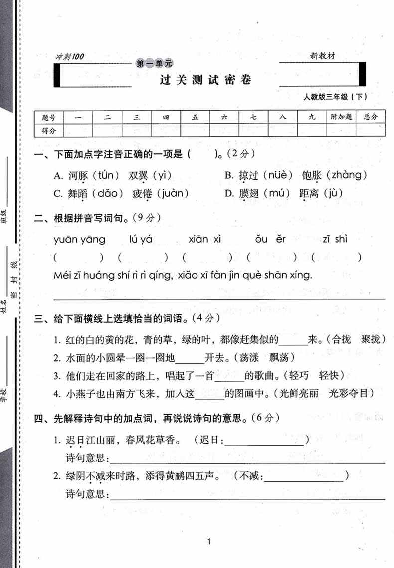 2023春 期末冲刺100分语文 三年级下册 人教版