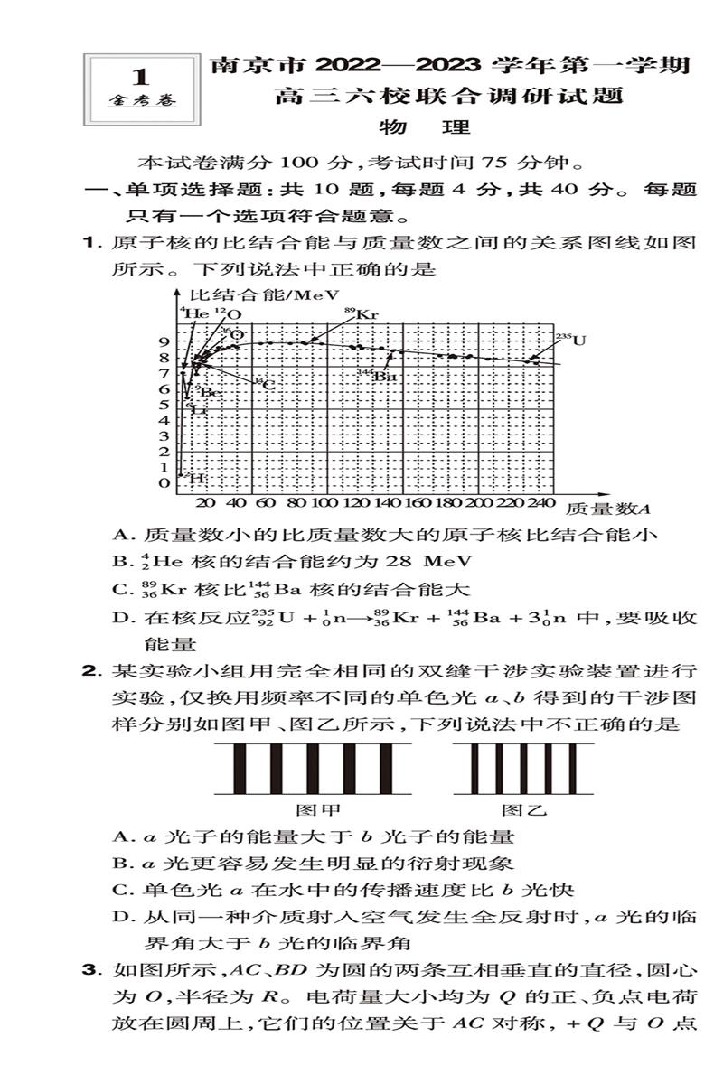 2023版天星教育 金考卷特快专递 第5期 物理(大市联考卷)