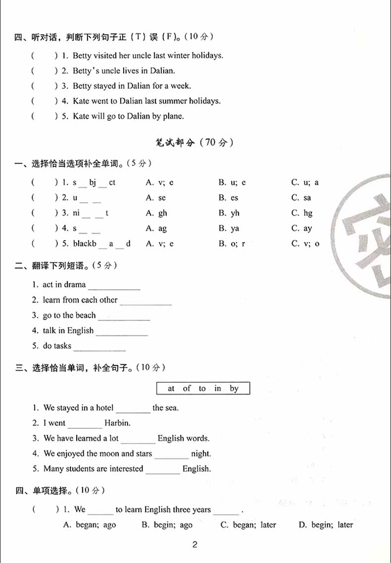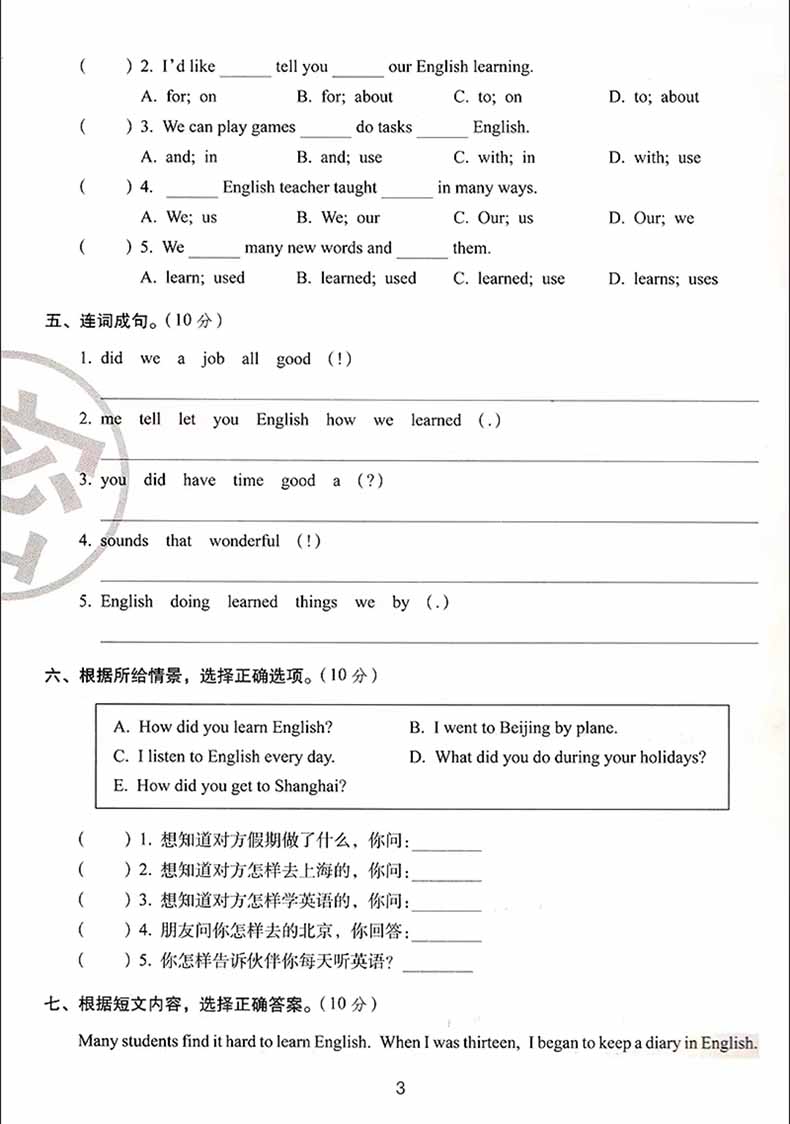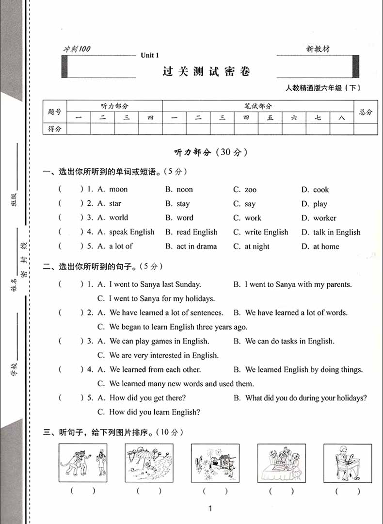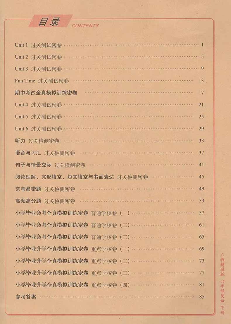 2023春 期末冲刺100分英语 六年级下册 人教精通版