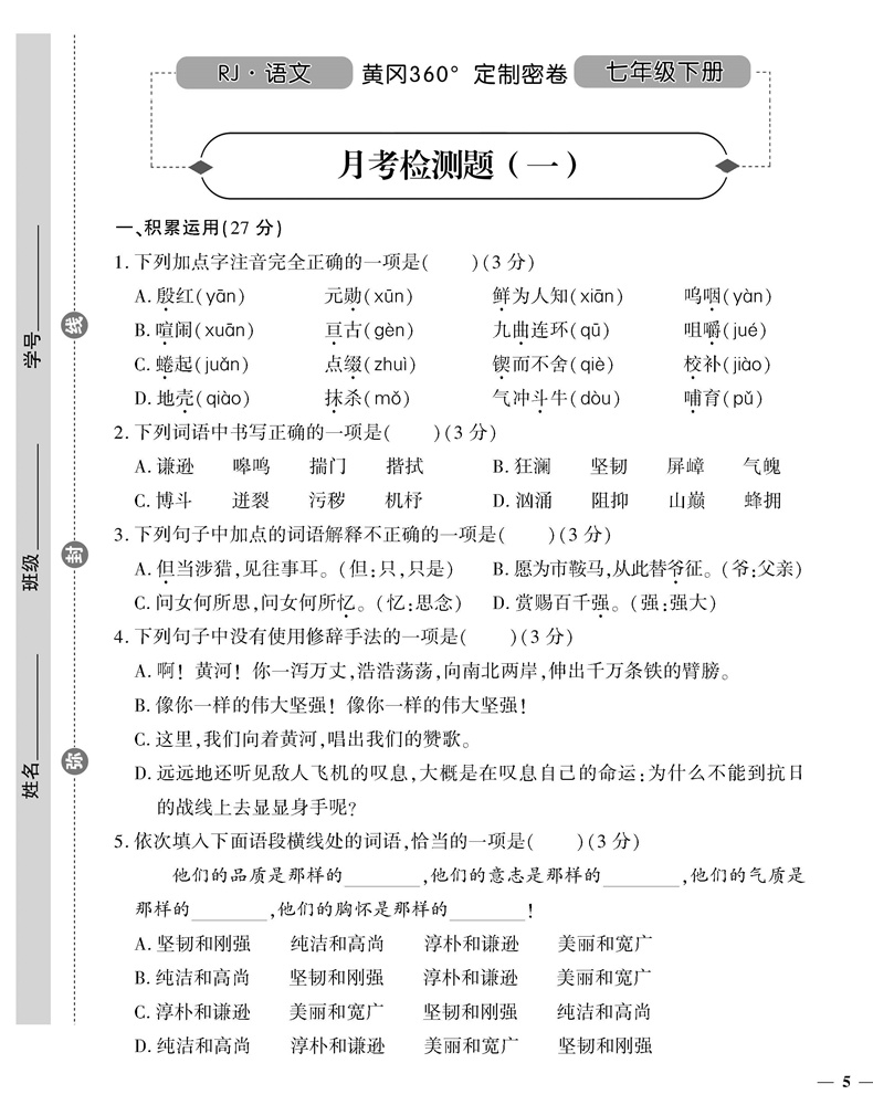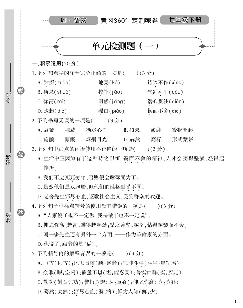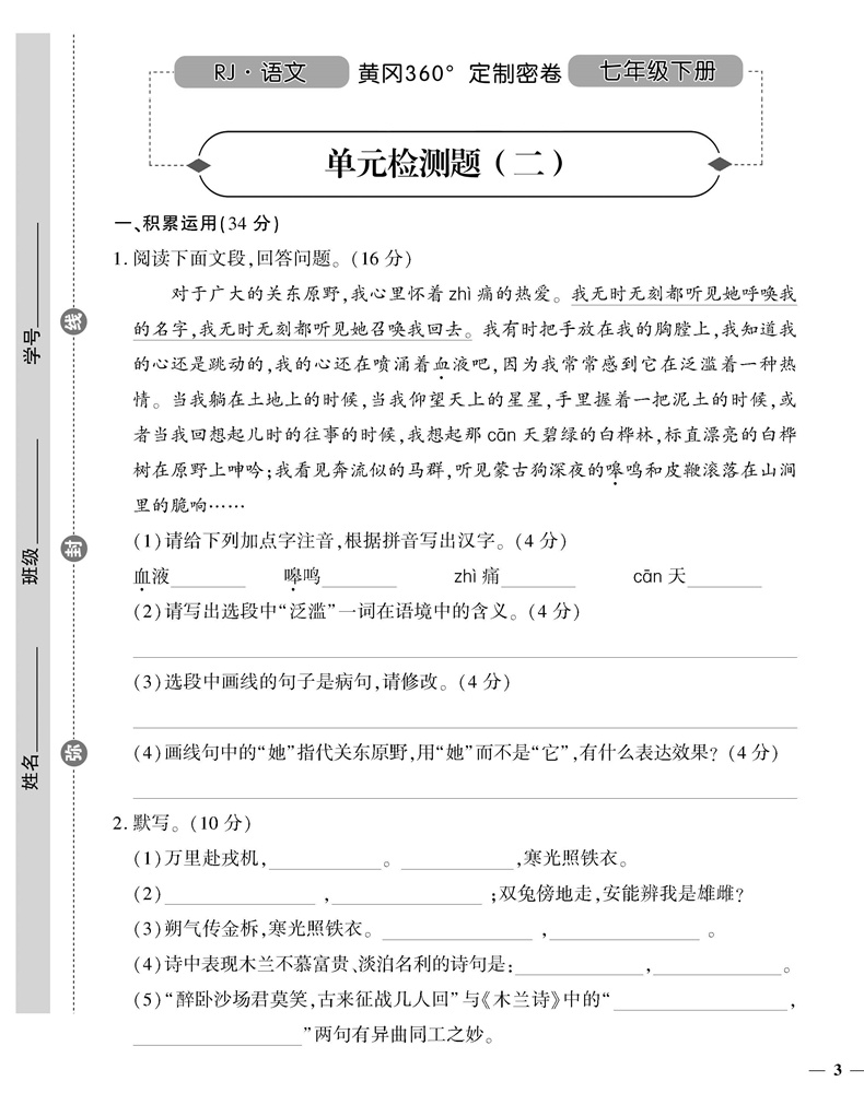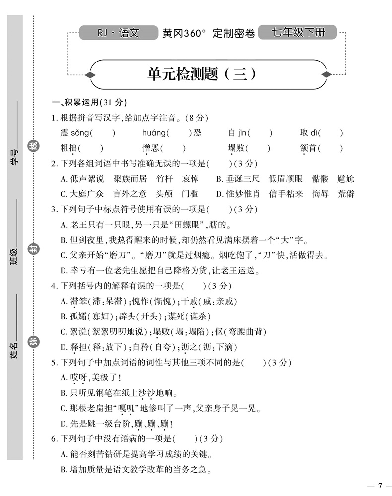 首页> 初中教辅> 七年级> 语文> 黄冈360定制密卷 七年级 语文下册