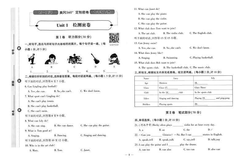 首页> 初中教辅> 七年级> 英语> 黄冈360定制密卷 七年级 英语下册
