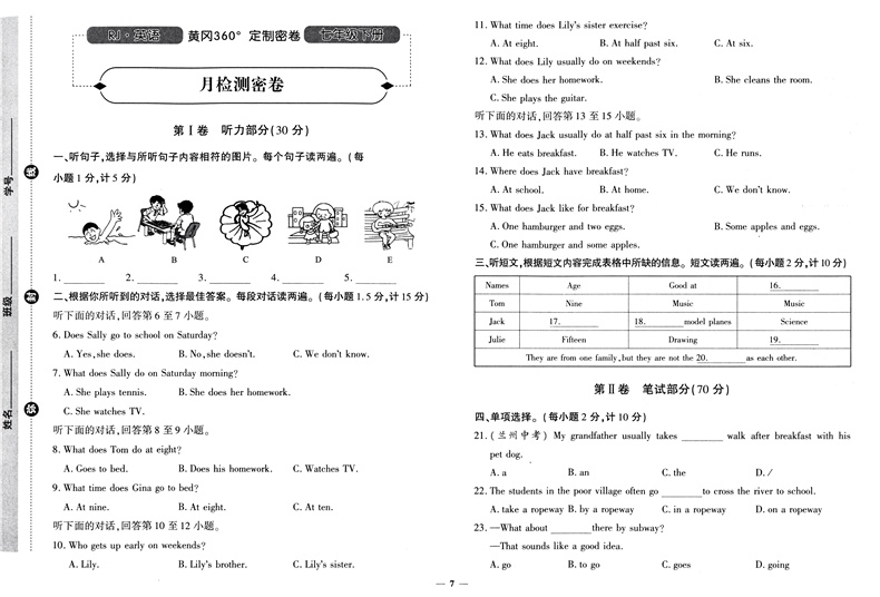 黄冈360定制密卷 七年级 英语下册