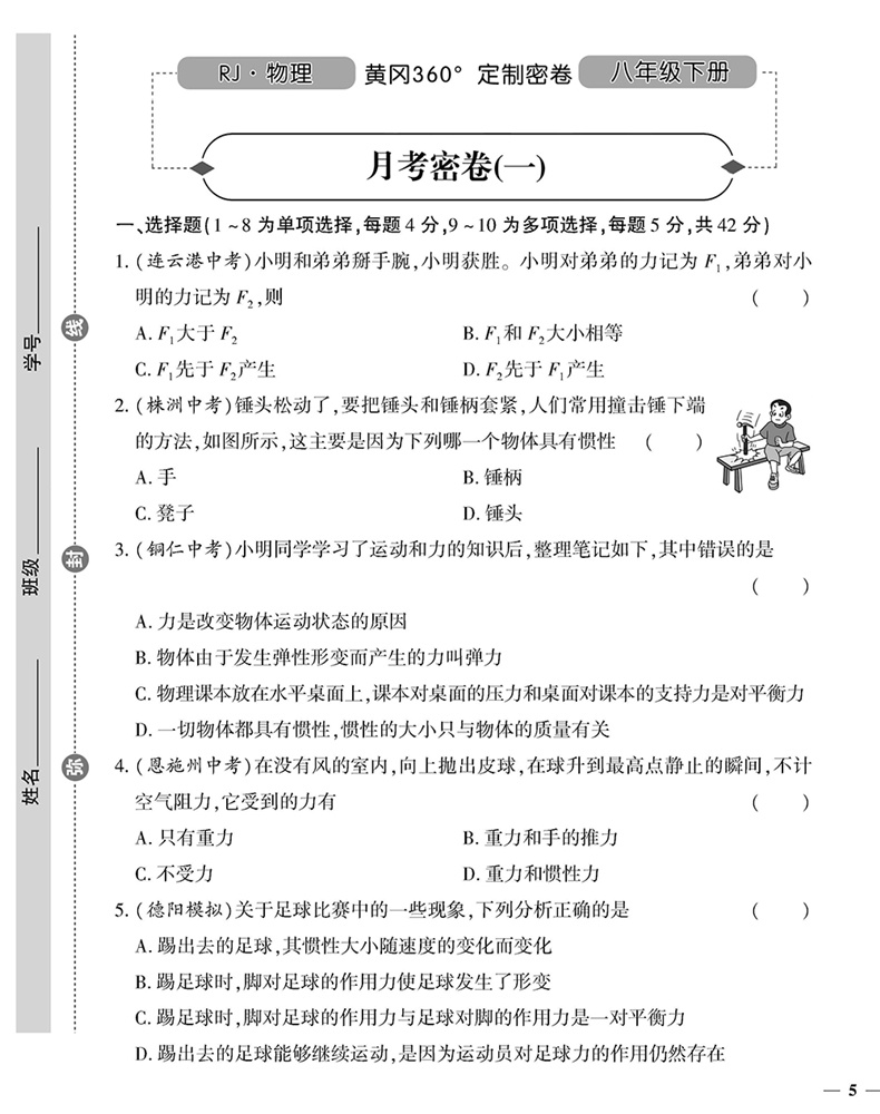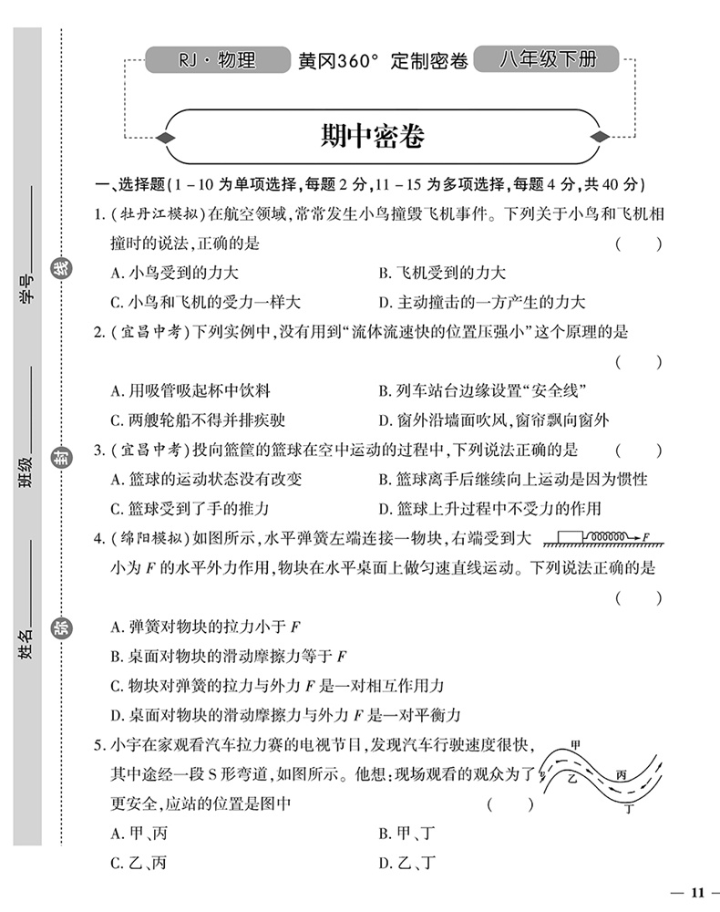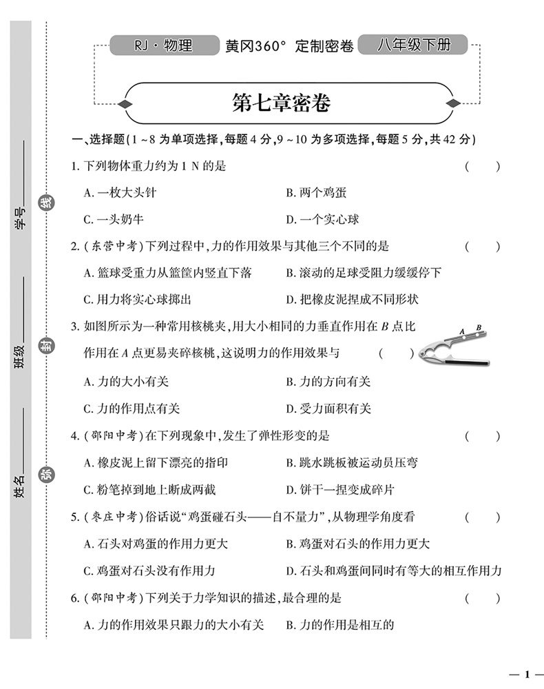 黄冈360定制密卷 八年级 物理下册