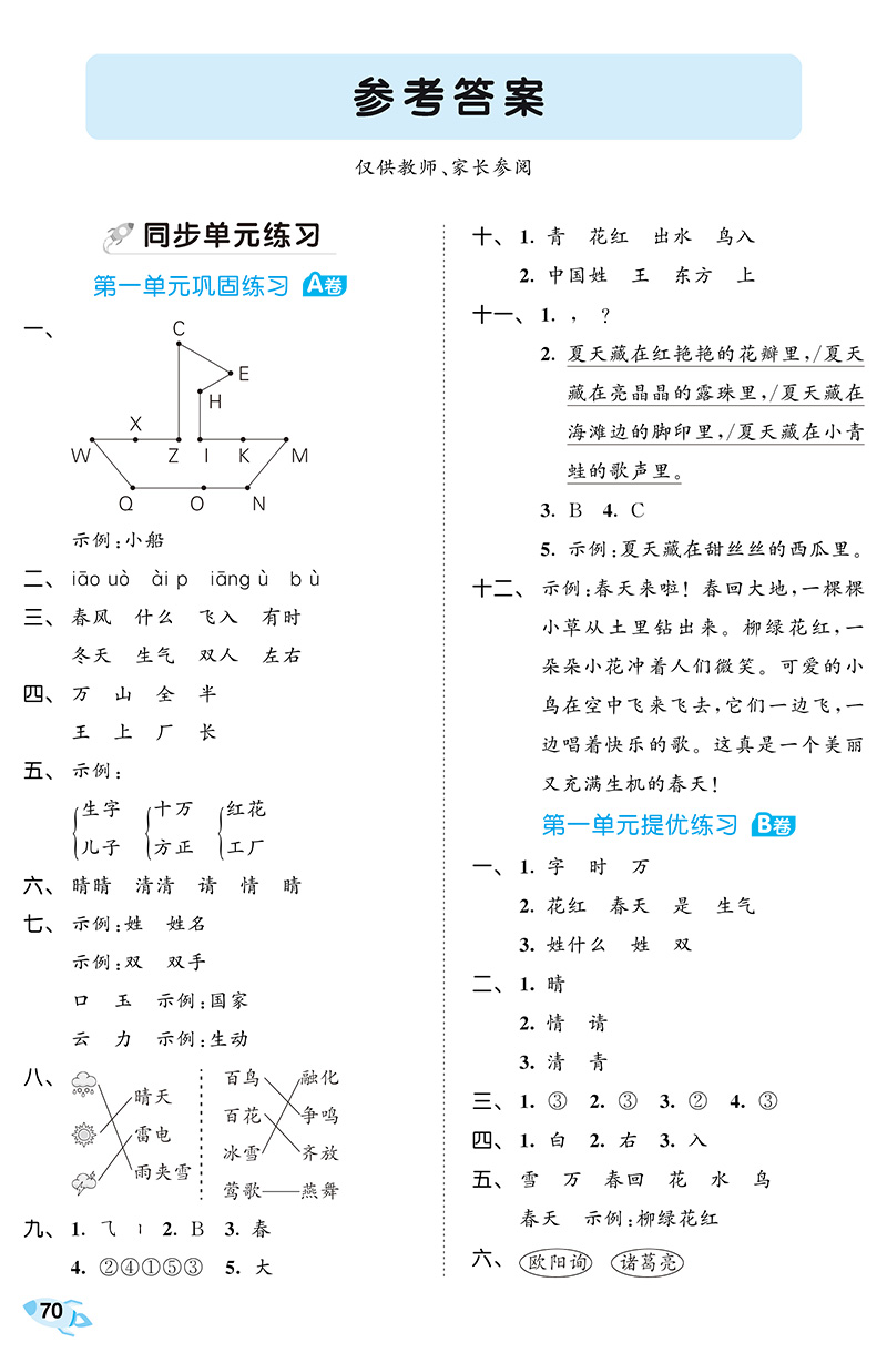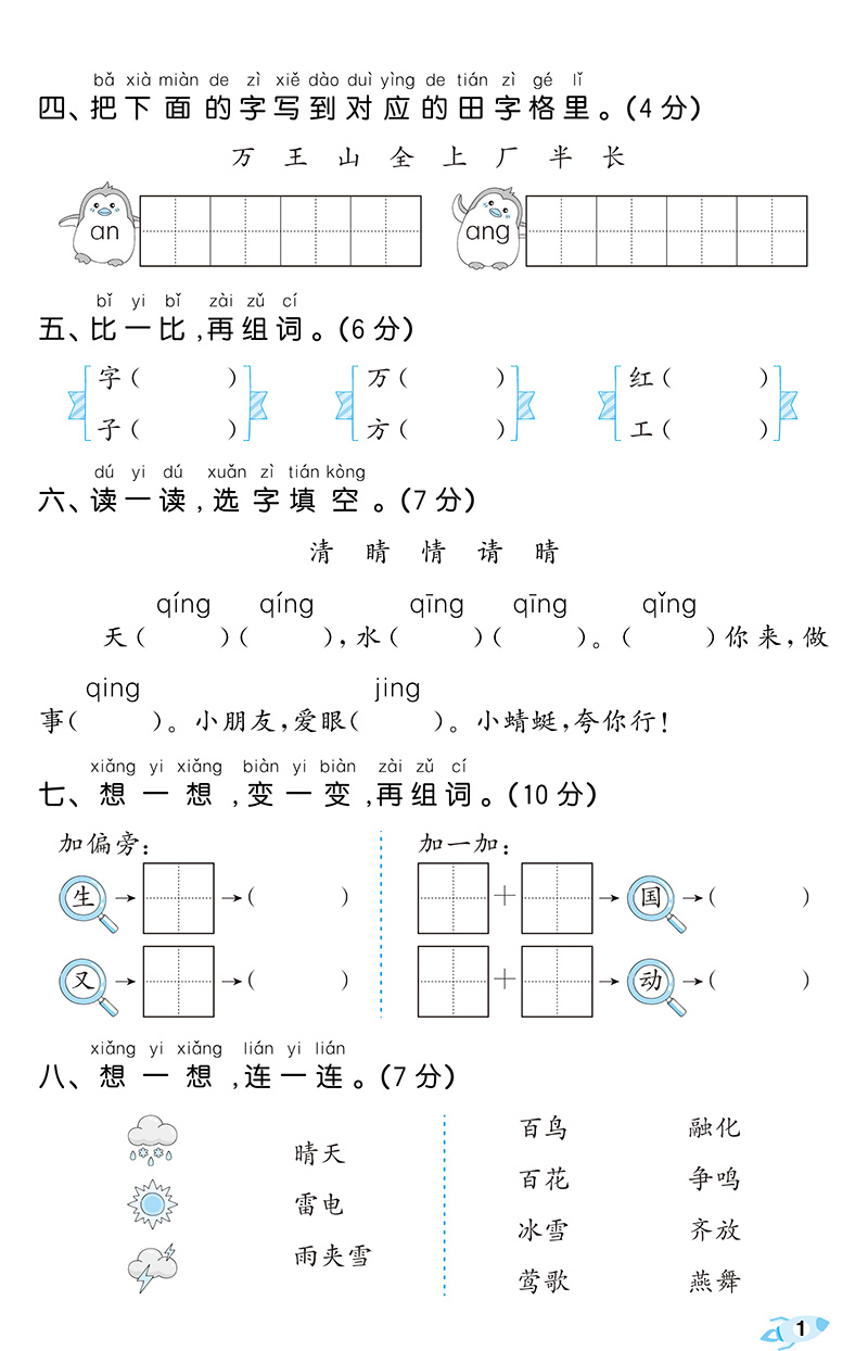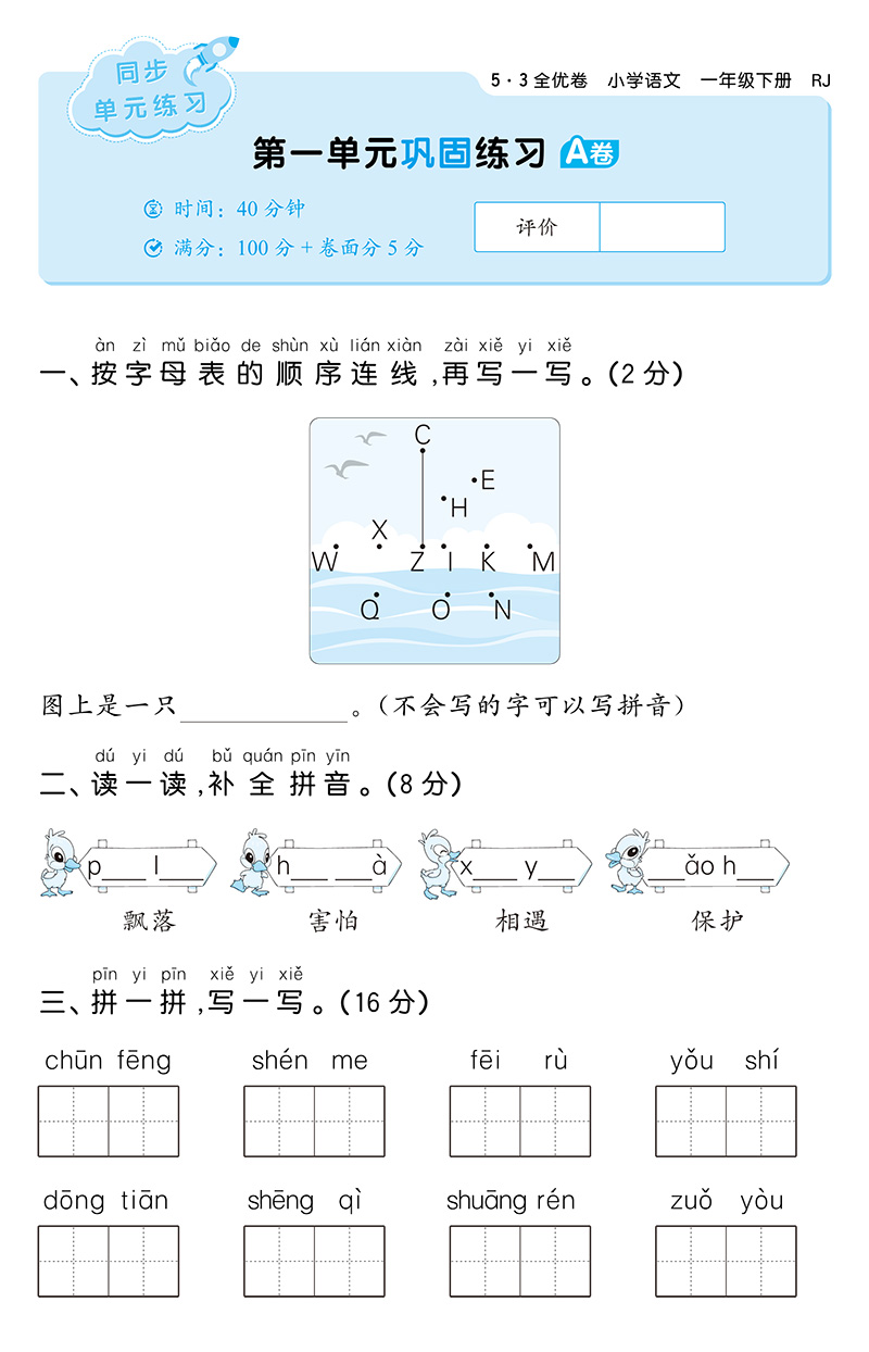 2023春季 53全优卷 小学语文 一年级下册 RJ 人教版