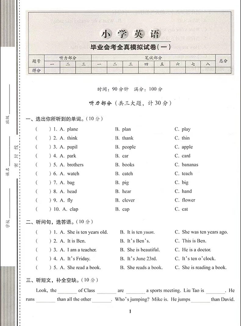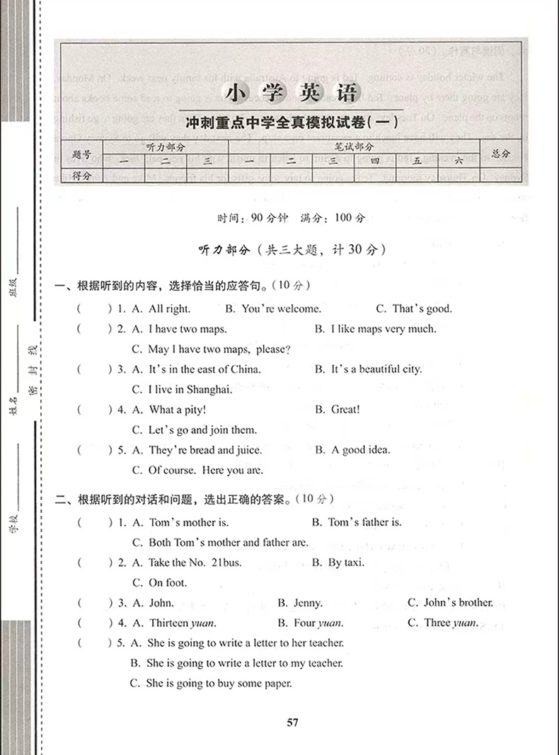 首页> 小学教辅> 六年级> 英语> 2023版 小学毕业升学全真模拟试卷 英语总复习模拟测试卷
