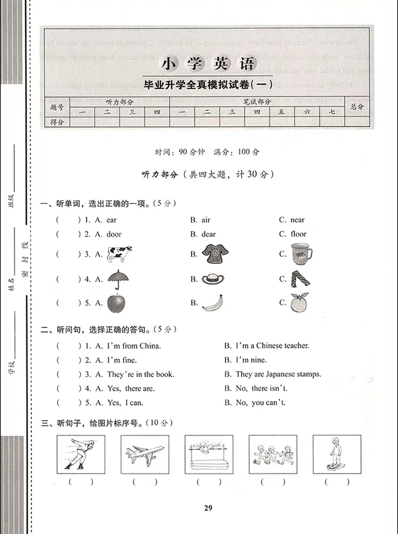 2023版 小学毕业升学全真模拟试卷 英语总复习模拟测试卷