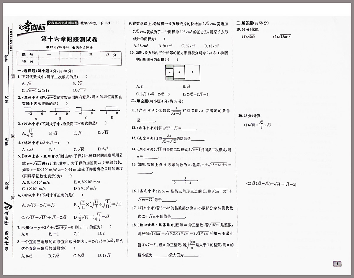 神龙教育 期末考向标 数学 八年级下册 人教版