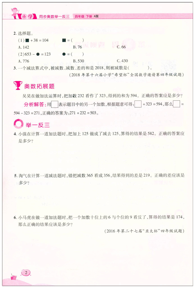 首页> 小学教辅> 四年级> 数学> 小学同步奥数举一反三:A版 四年级 下册