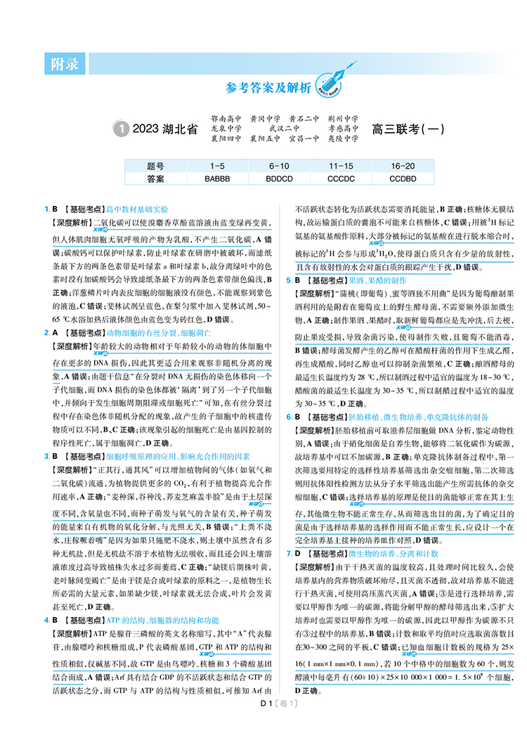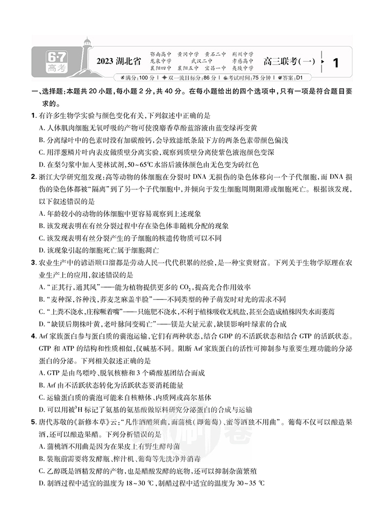 2023高考必刷卷 专题强化卷 高三冲刺 12套模拟汇编 生物