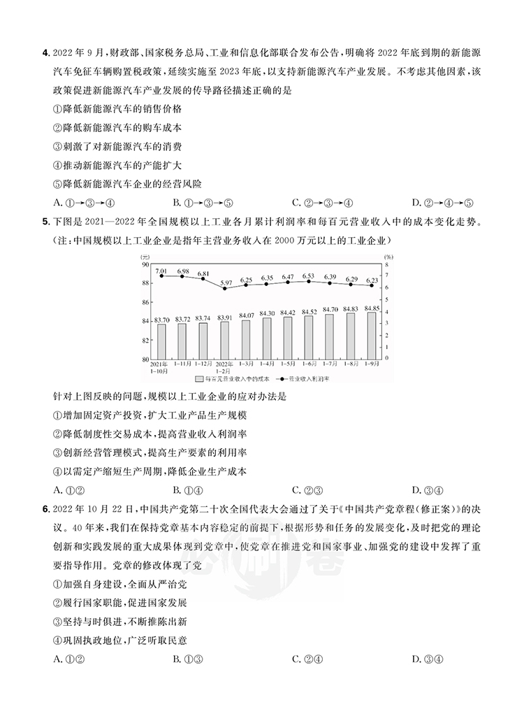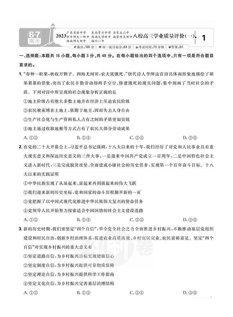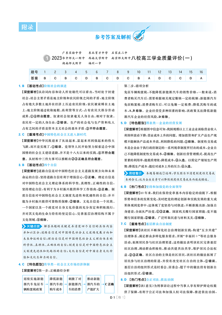 2023高考必刷卷 专题强化卷 高三冲刺 12套模拟汇编 政治