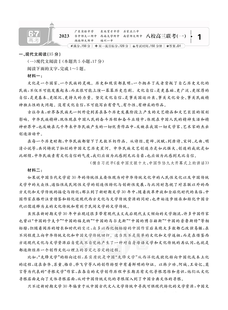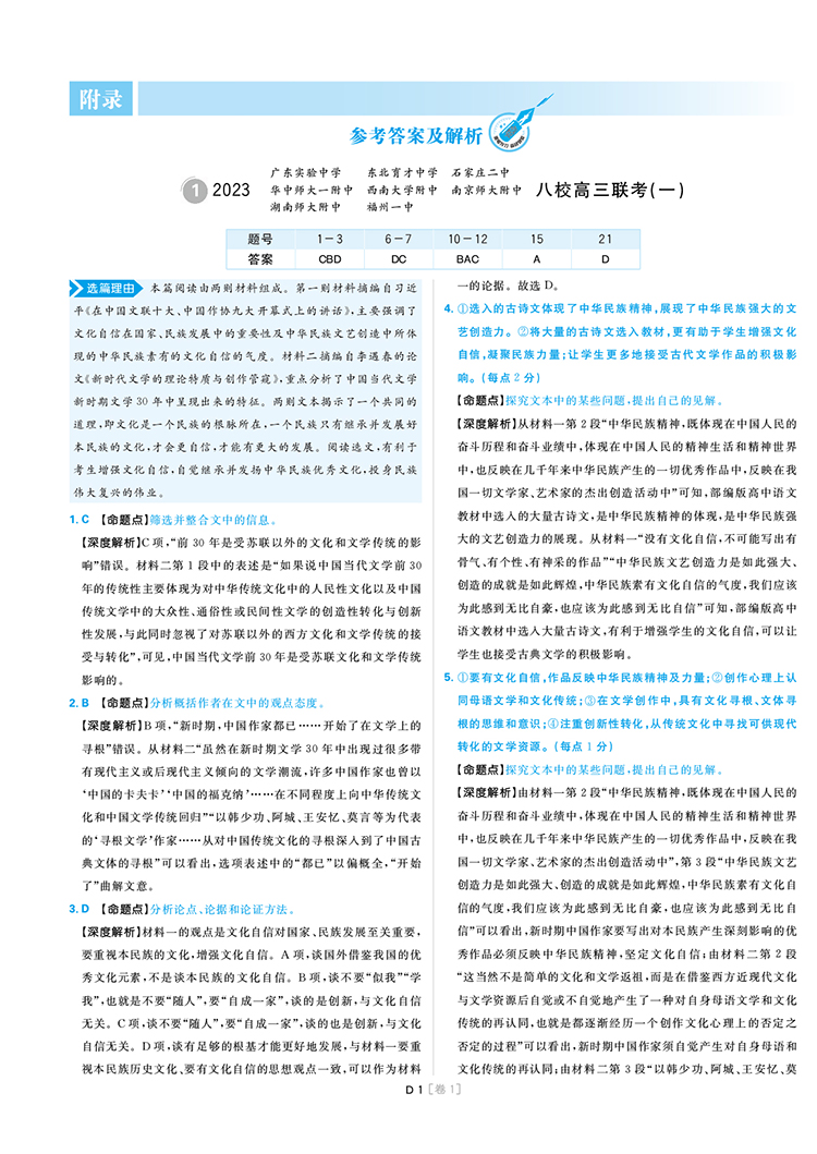 2023高考必刷卷 专题强化卷 高三冲刺 12套模拟汇编 语文