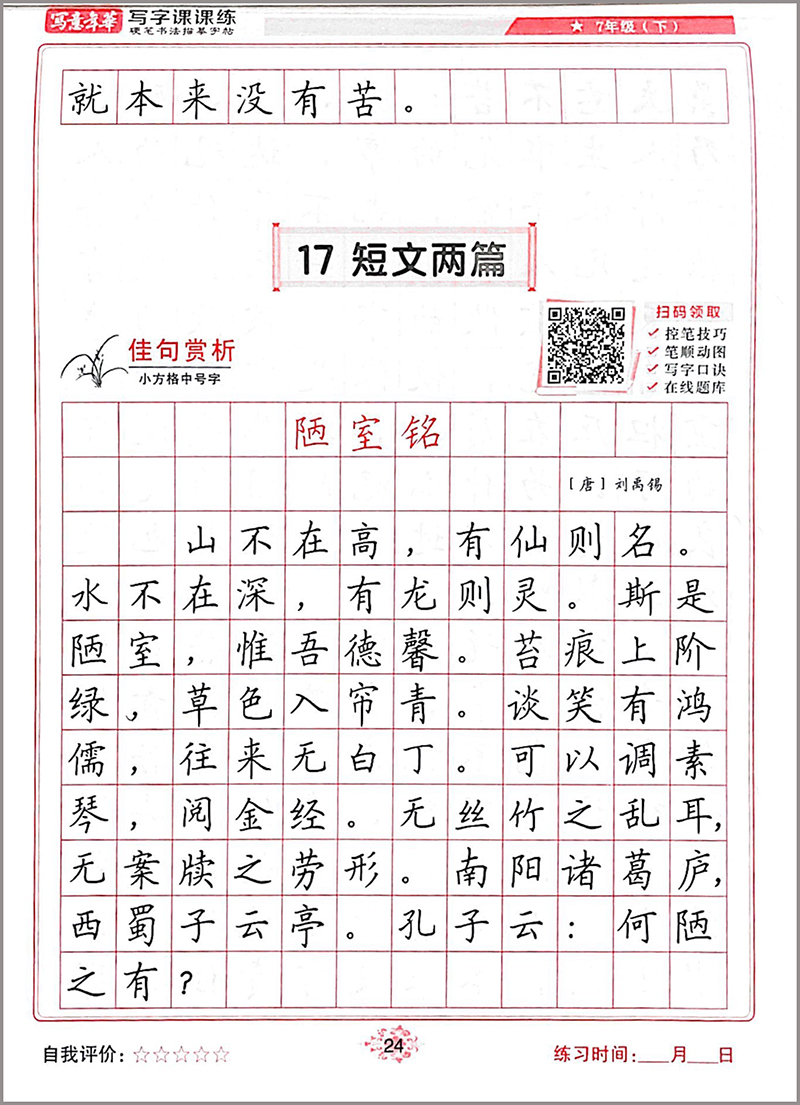 首页> 初中教辅> 七年级> 语文> 写字课课练七年级语文下册