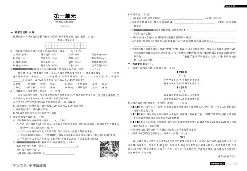 首页> 初中教辅> 七年级> 语文> 中考快递 同步检测 语文七年级下册RJ