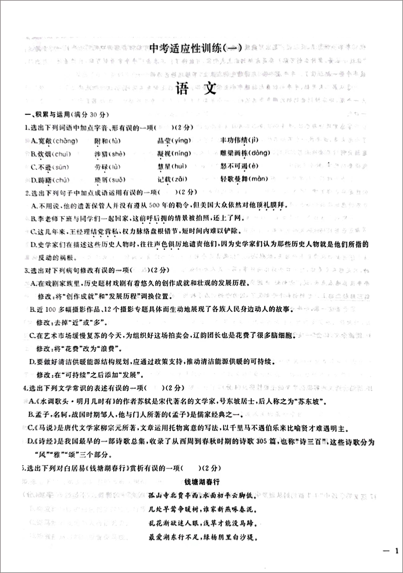 首页> 初中教辅> 中考> 语文> 中考 适应性训练考典 语文