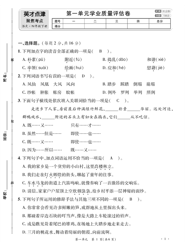 首页> 小学教辅> 四年级> 语文> 英才点津 聚焦考点语文 四年级下册 人教版