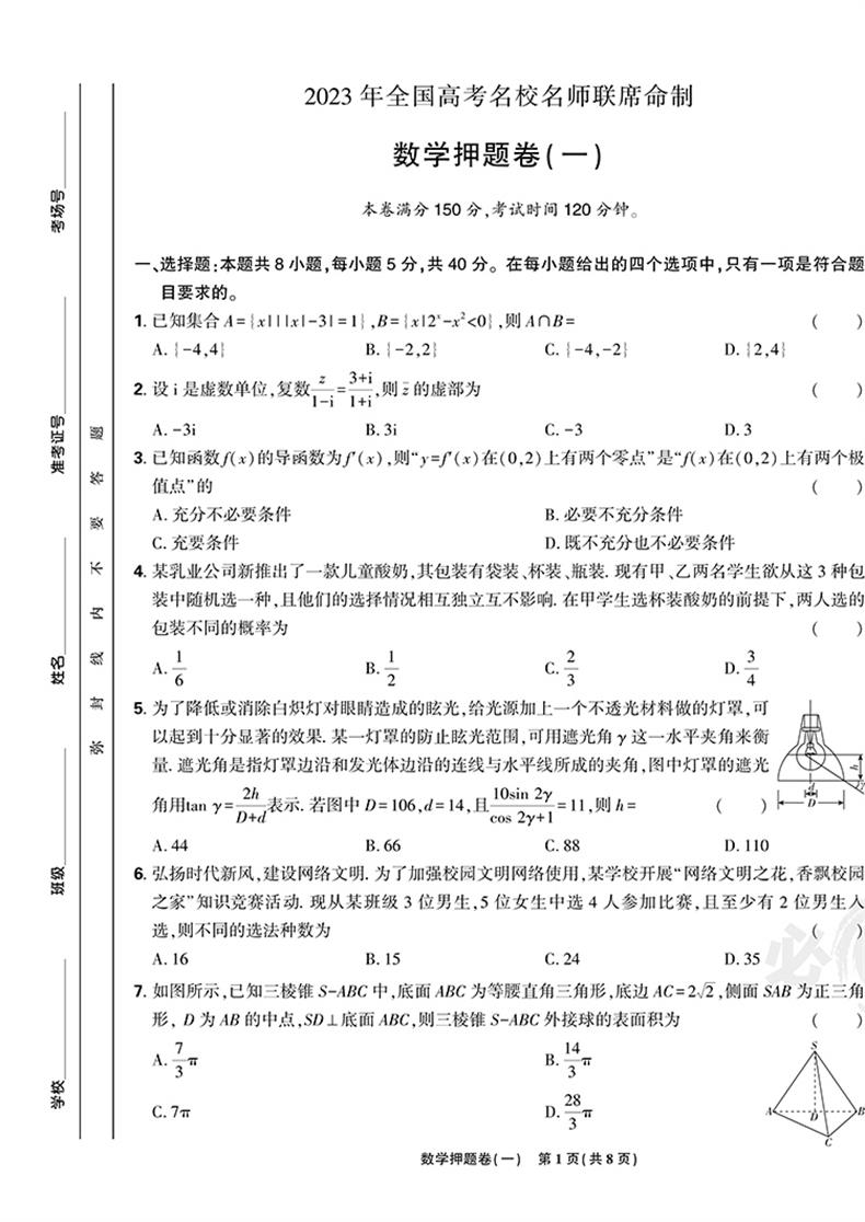 首页> 高中教辅> 高三年级> 数学> 2023新版 高考必刷卷押题卷 数学