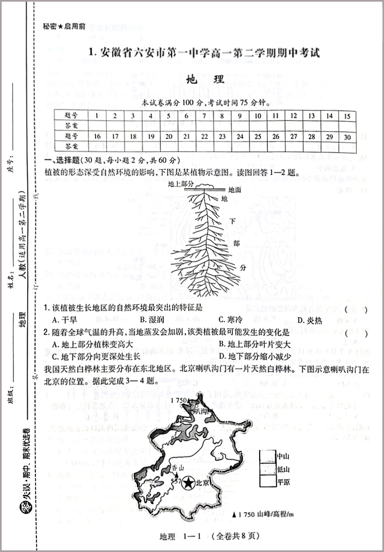 首页> 高中教辅> 高一年级> 地理> 2023版 零失误期中期末优选卷 地理高一第二学期人教版RJ