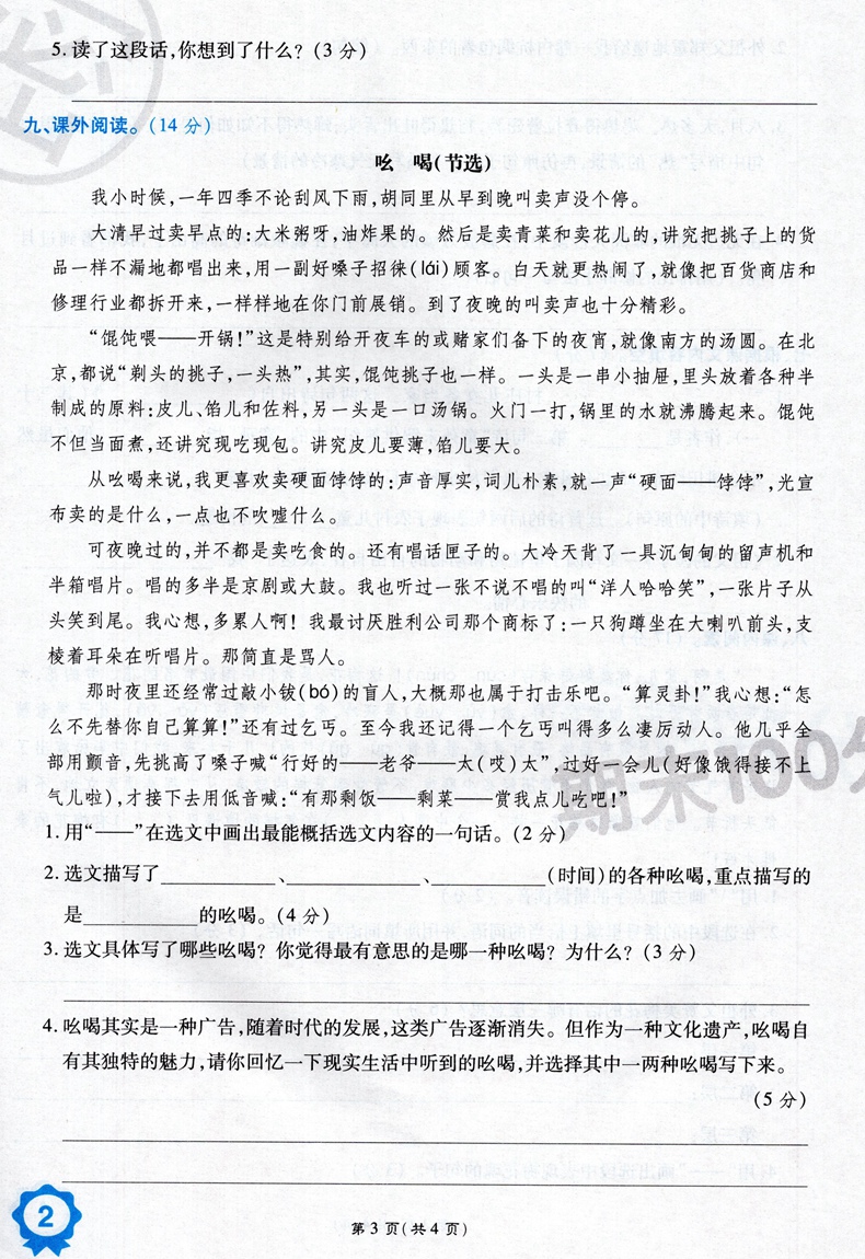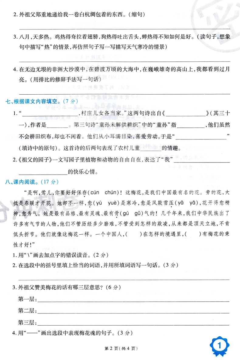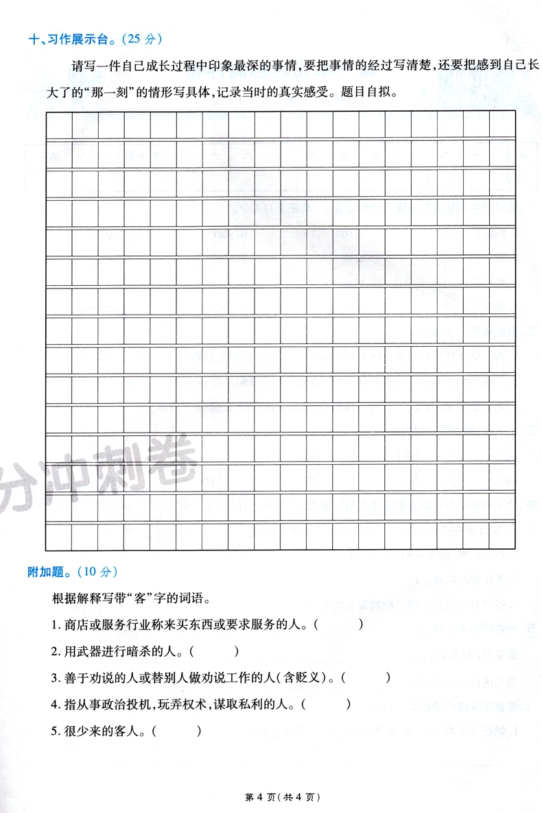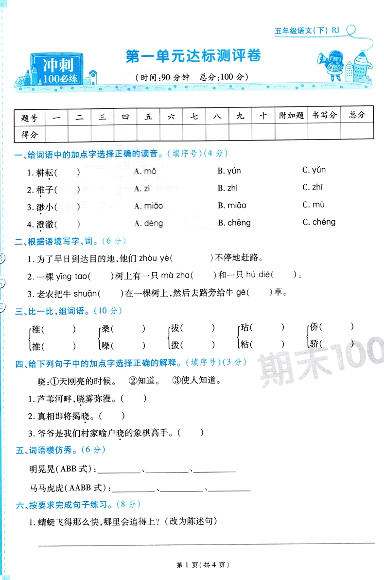 万象思维 期末100分冲刺卷 五年级下册语文人教版