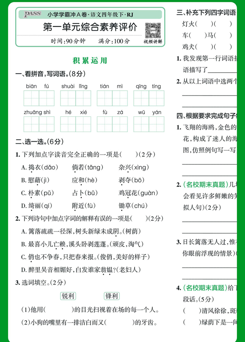 首页> 小学教辅> 四年级> 语文> 小学学霸冲A卷 语文四年级下册 人教版