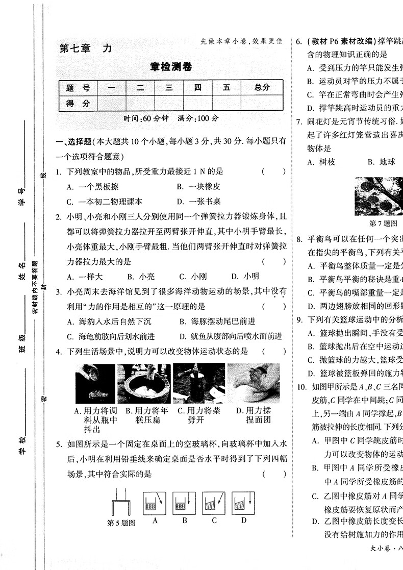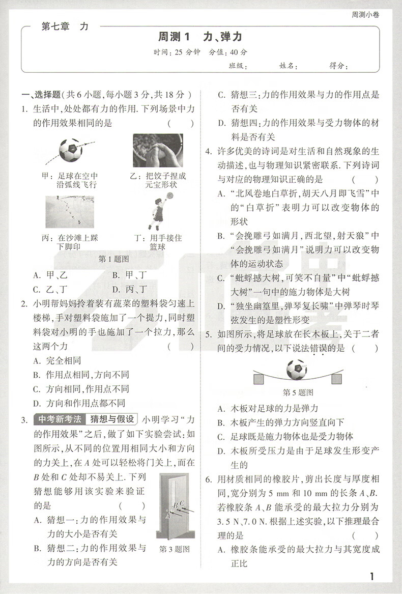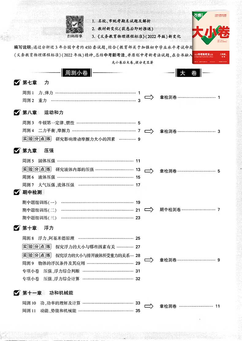 2023版 万唯中考大小卷 初中八年级下册 物理