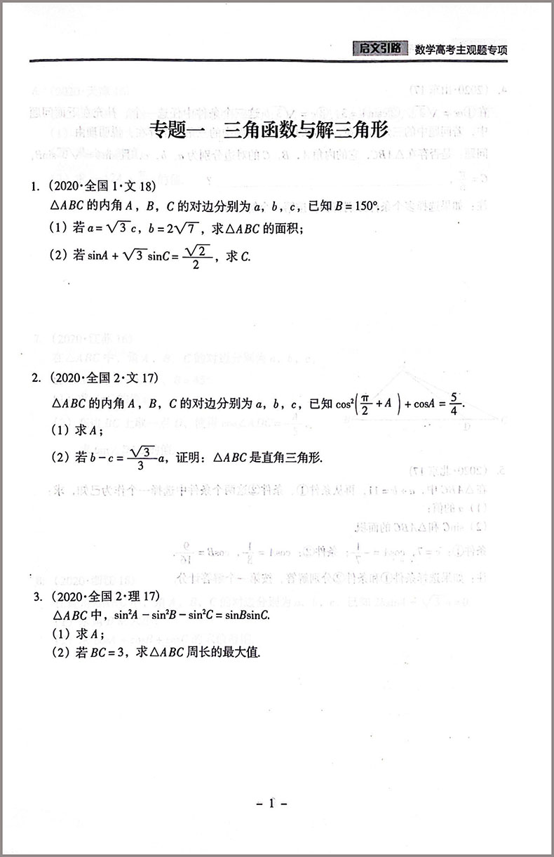 首页> 高中教辅> 高三年级> 数学> 启文引路数学高考主观题专项