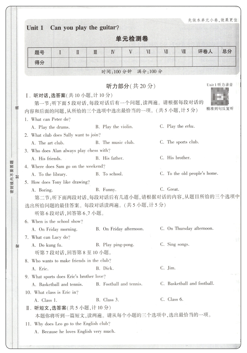 2023万唯中考大小卷七年级下册英语