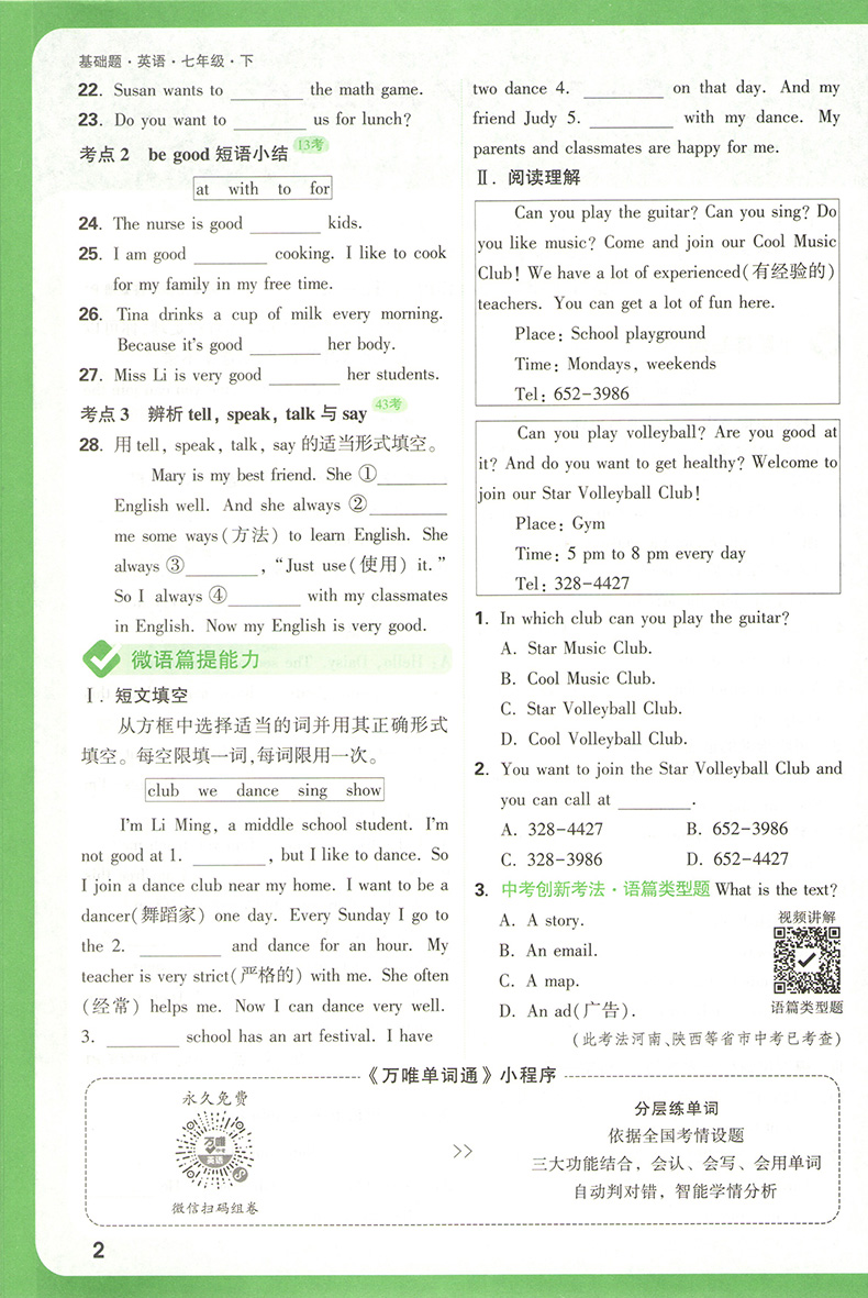 首页> 初中教辅> 七年级> 英语> 2023春万唯中考基础题七年级下册英语