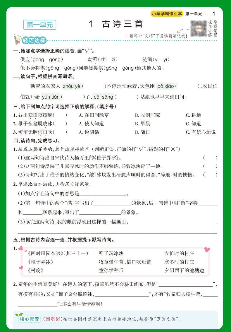 pass绿卡 小学学霸作业本语文五年级下册 人教版