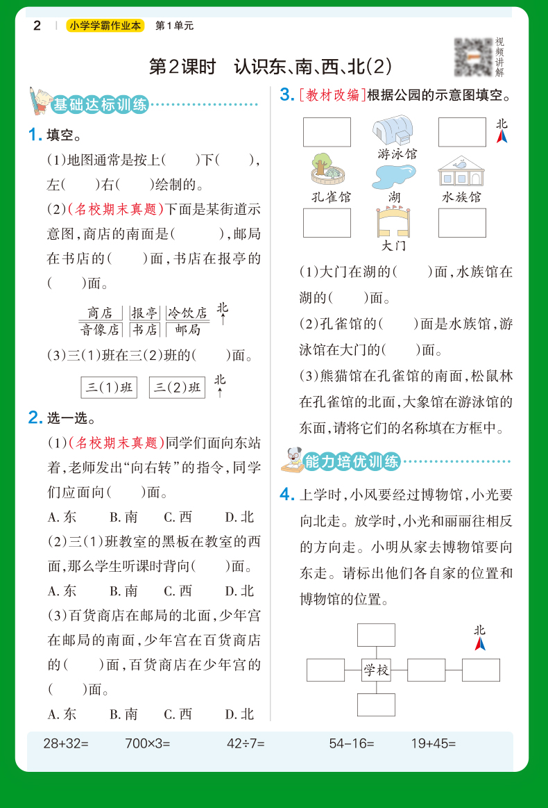 首页> 小学教辅> 三年级> 数学> pass绿卡 小学学霸作业本数学三年级下册 人教版