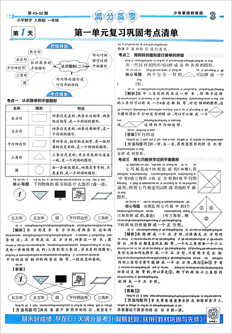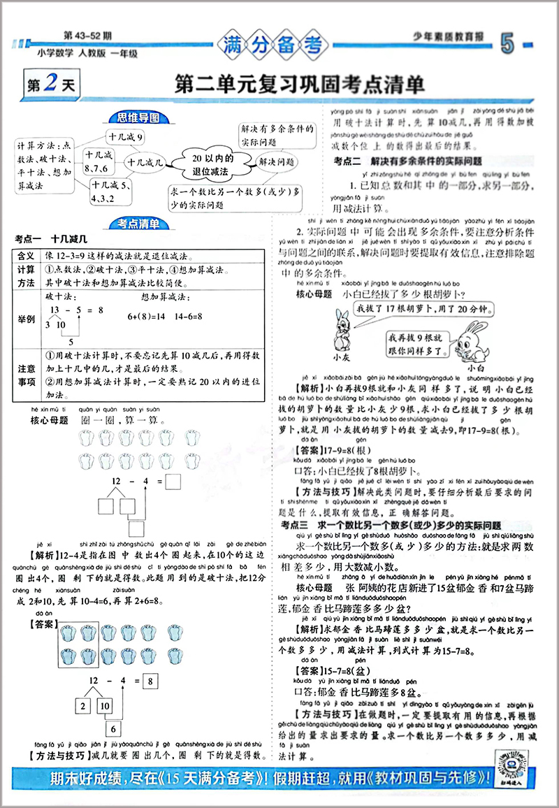 少年素质教育报 小学数学一年级 人教版 15天满分备考期末系统总复习