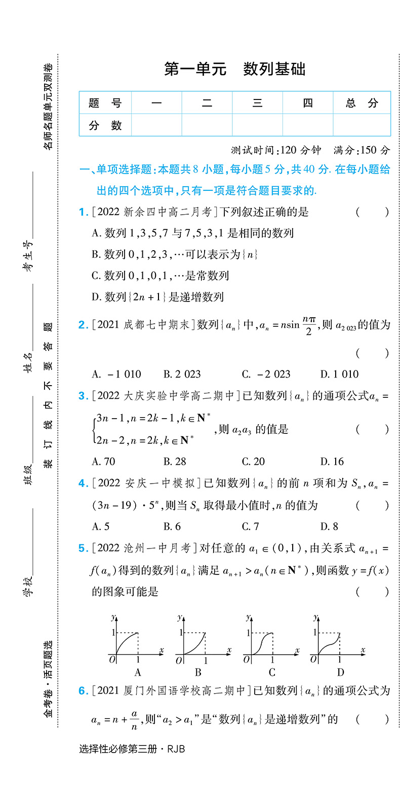2023版活页题选名师名题单元双测卷 选择性必修 第三册 数学 RJB