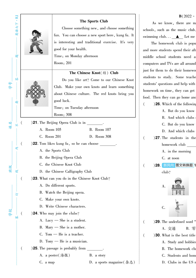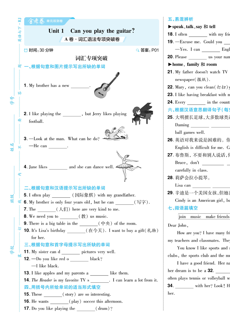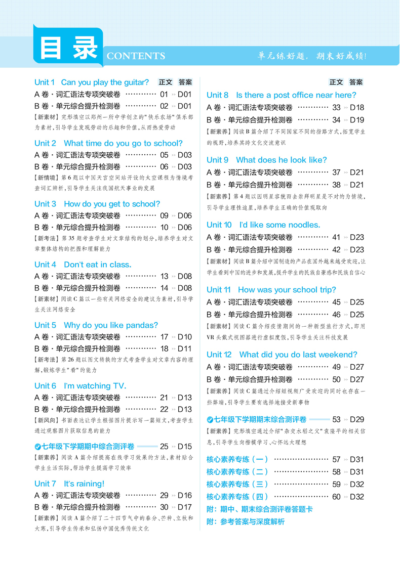 首页> 初中教辅> 七年级> 英语> 2023版 活页题选名师名题单元双测卷 七年级英语下册 人教版