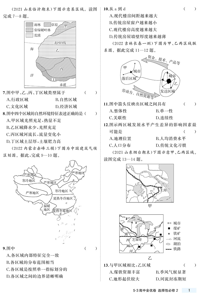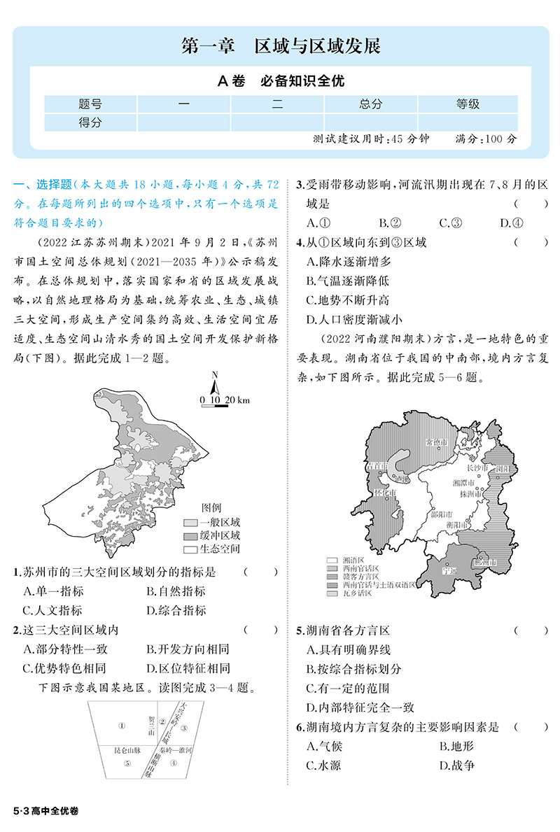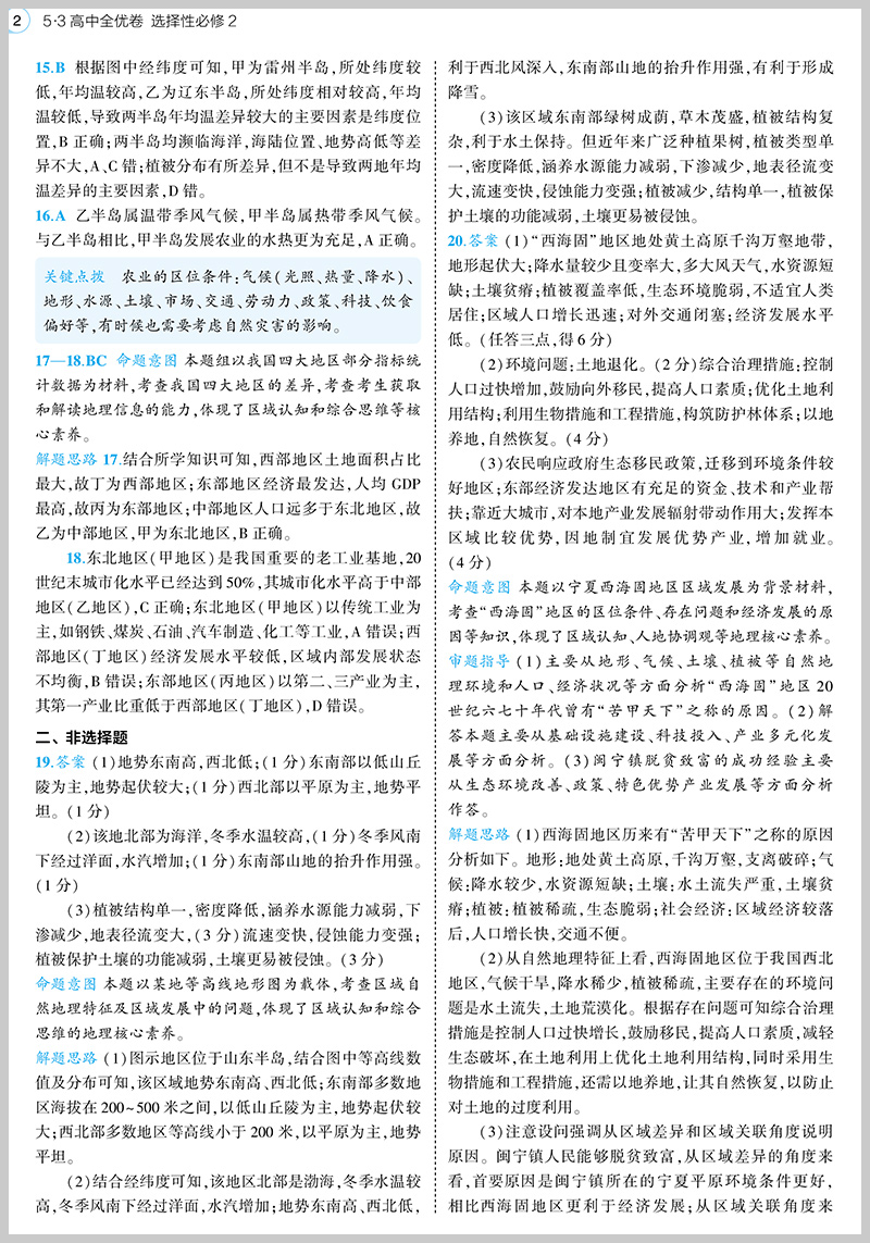 曲一线高二下 53高中全优卷 地理选择性必修2、3 2023版 人教