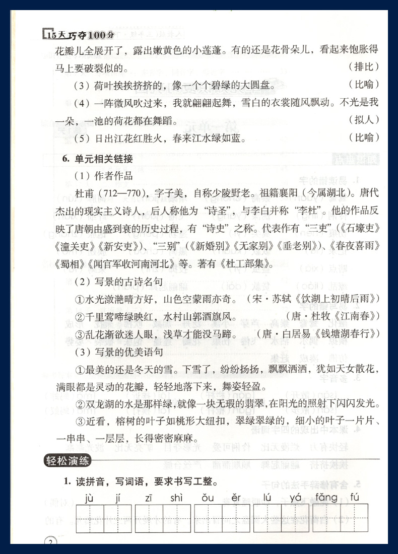 首页> 小学教辅> 三年级> 语文> 15天巧夺100分 小学语文三年级下册 人教版