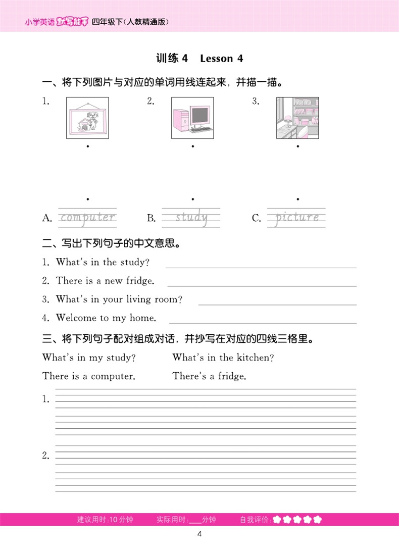 2023春通成学典 小学英语默写能手 四年级下 人教精通版