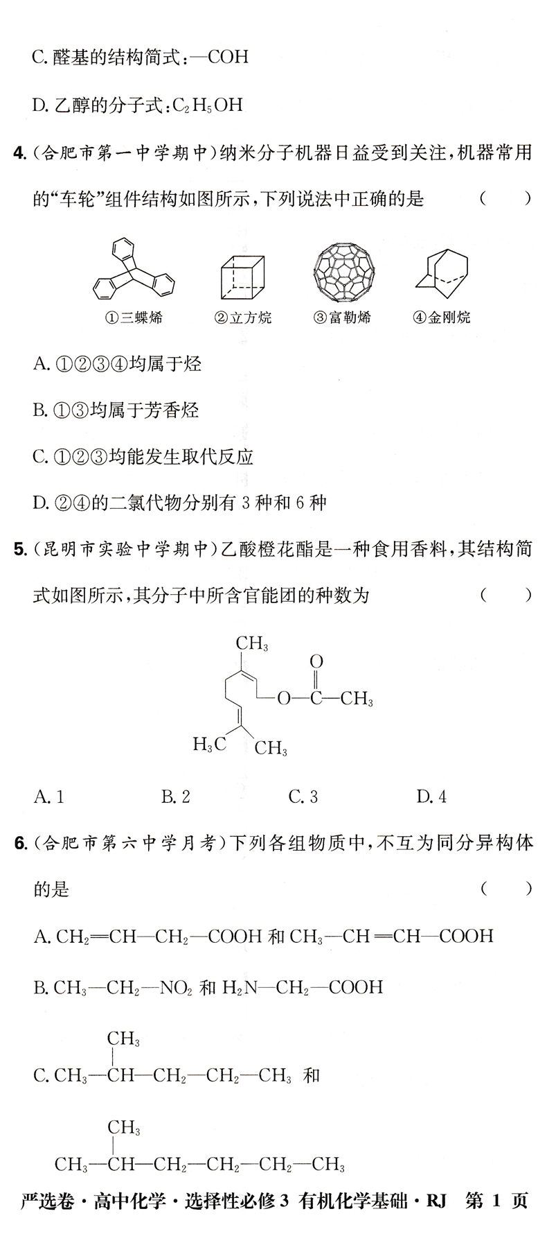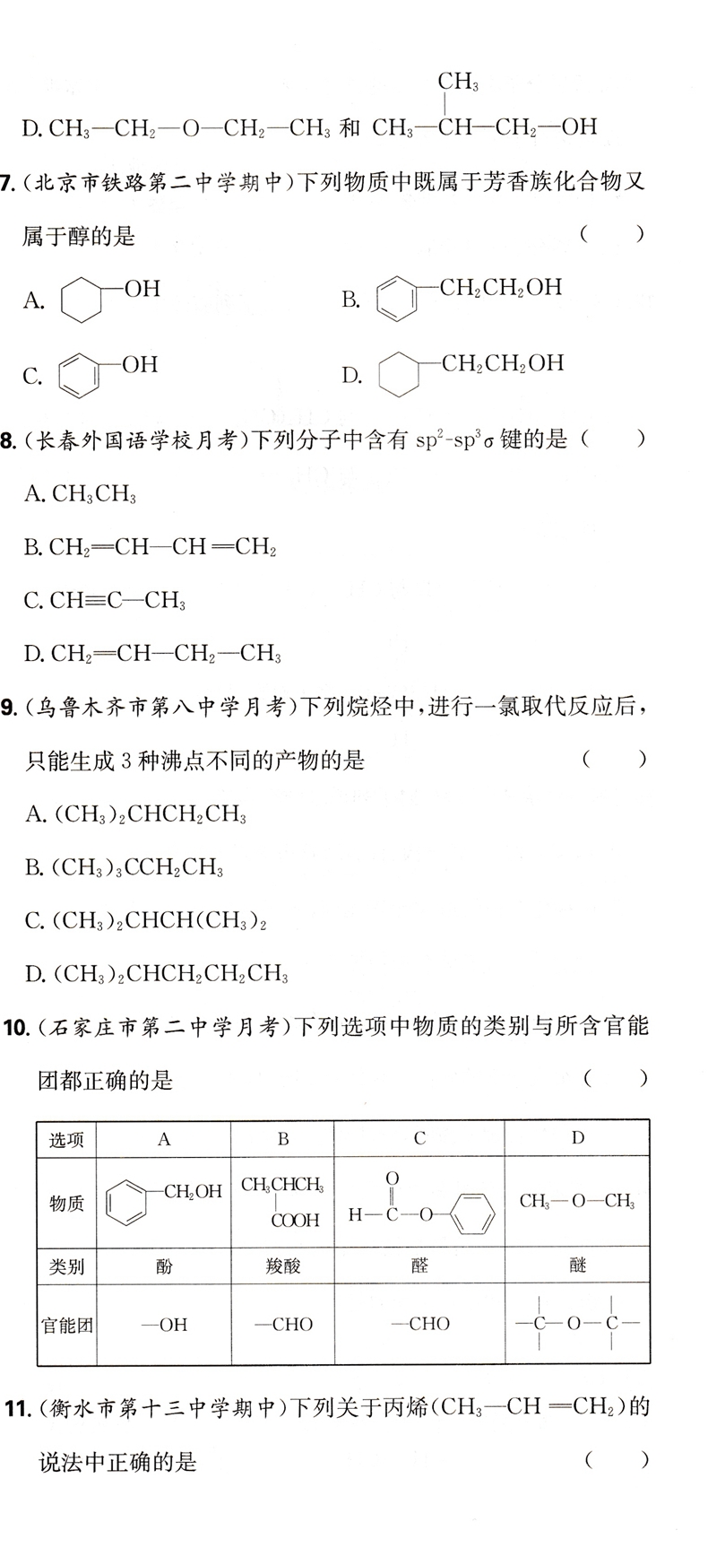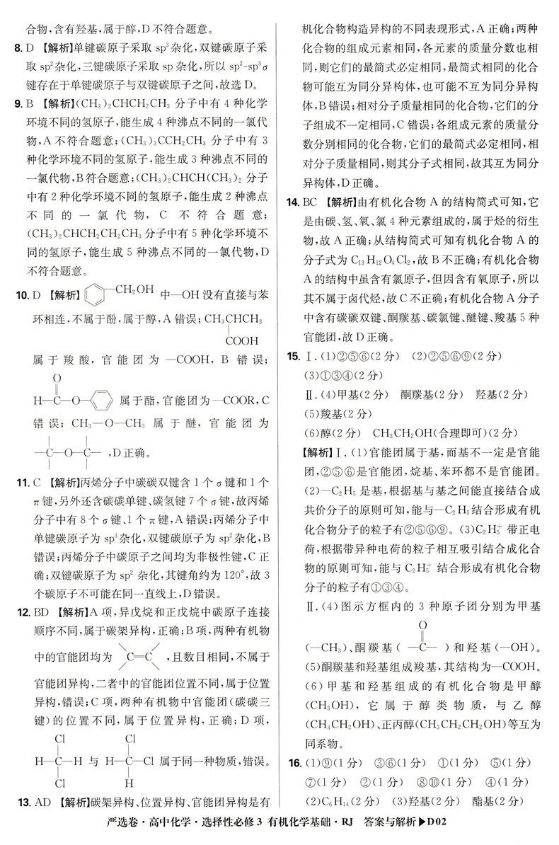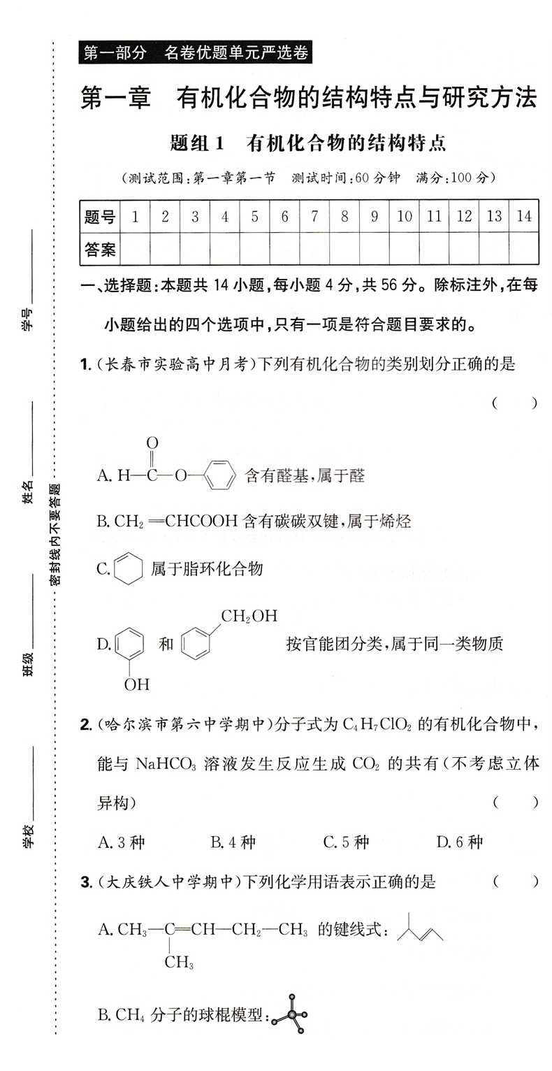 2023版百强高中 严选卷 高中化学 高二化学 选择性必修3三 有机化学基础 人教版