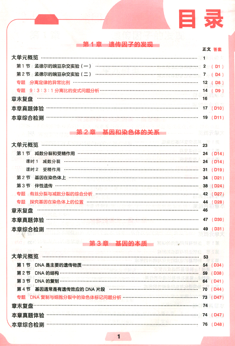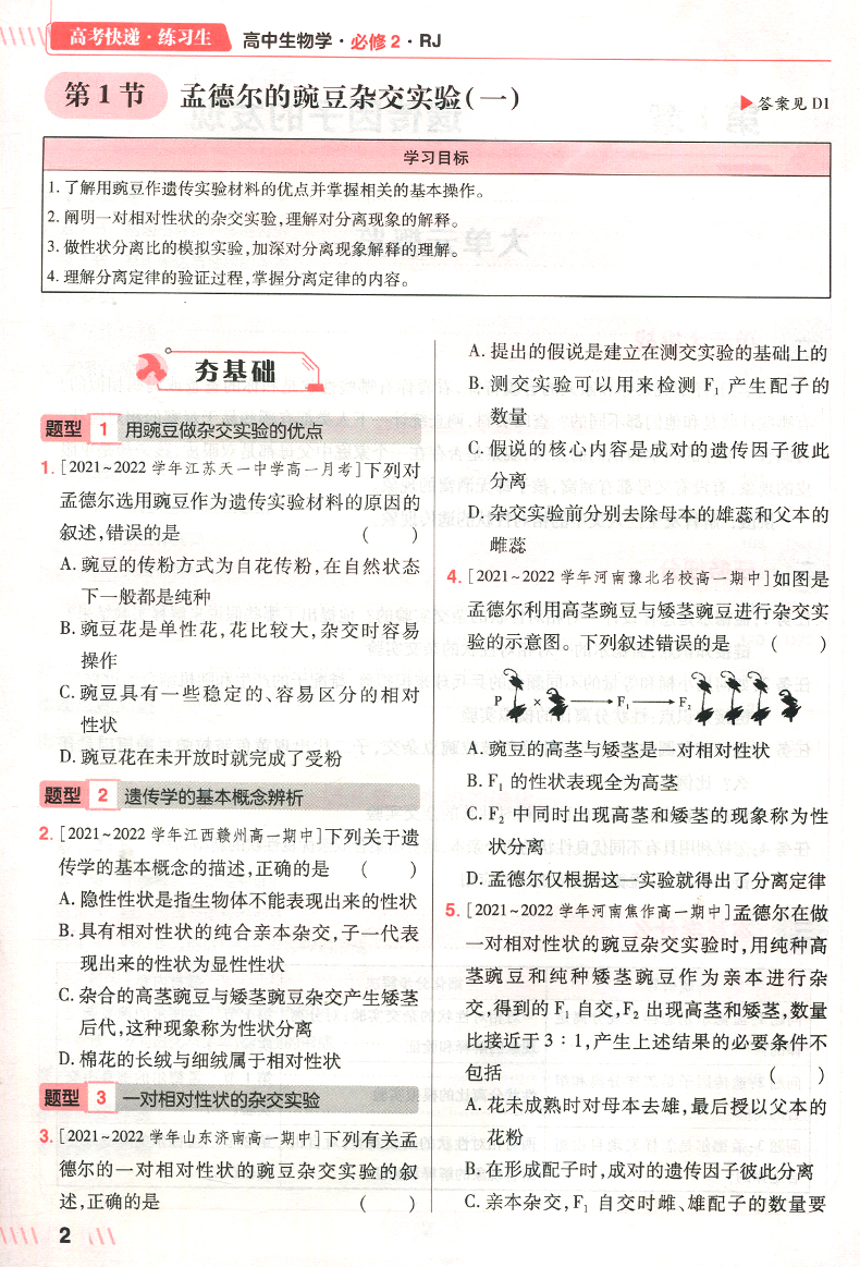 2023版 练习生高中生物学必修2 RJ版