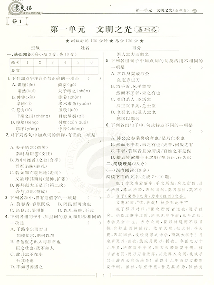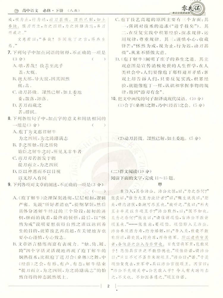 首页> 高中教辅> 高一年级> 语文> 零失误单元分层测试卷 高中语文 必修下册 人教版