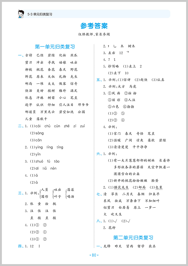 首页> 小学教辅> 二年级> 语文> 53单元归类复习二年级下册语文人教版 2023春