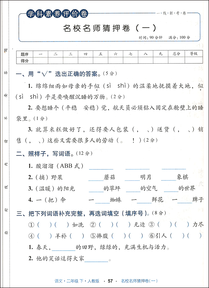 首页> 小学教辅> 二年级> 语文> 小学素养新考卷二年级下册语文人教版