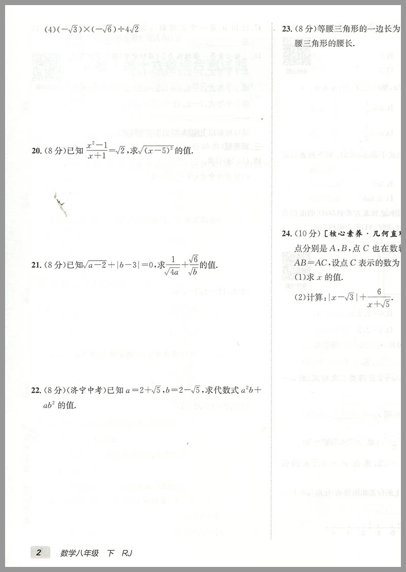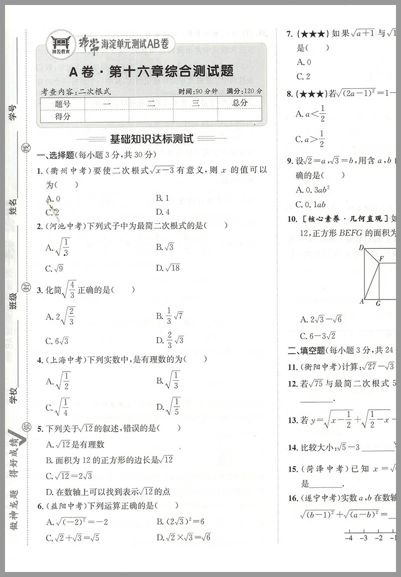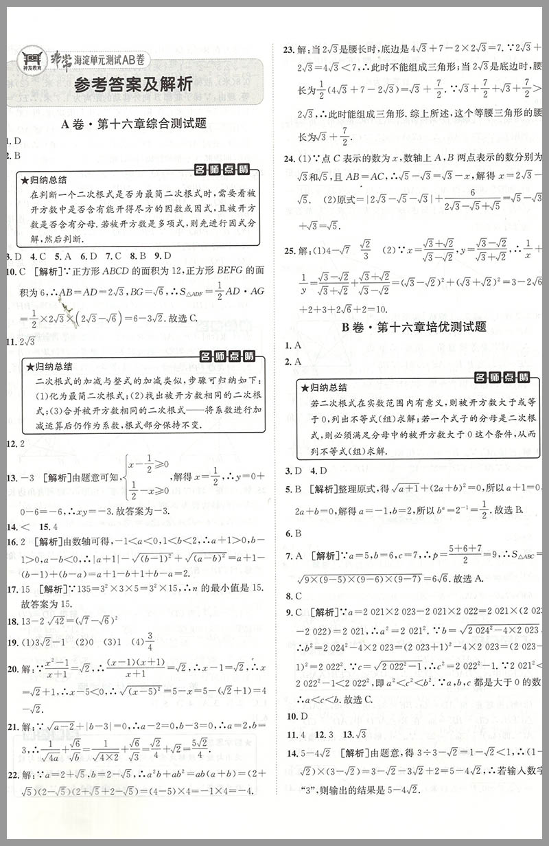 2023新版 非常海淀单元测试AB卷 八年级下册数学 人教版
