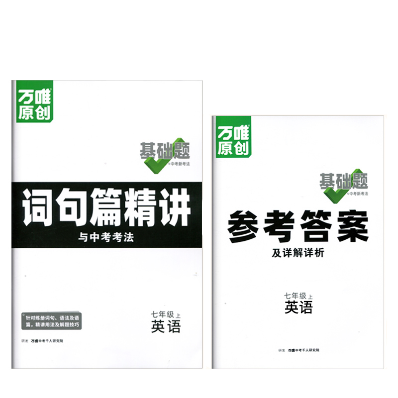 首页> 初中教辅> 七年级> 英语> 2024版万唯原创初中英语七年级上册基础题与30种中考新考法