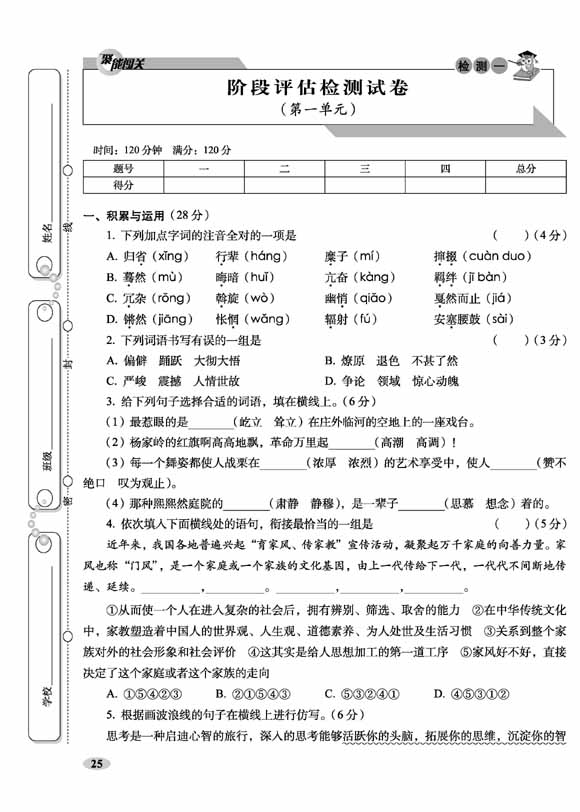聚能闯关100分期末复习冲刺卷八年级下册语文 23春 人教版