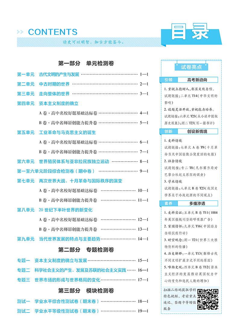 首页> 高中教辅> 高一年级> 历史> 天星教育2023金考卷 名师名题 单元双测卷 高中历史必修 中外历史纲要下 人教版
